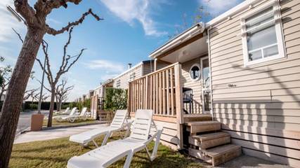Residence : Sulla costa mediterranea, tra Tarragona (30km) e Barcellona (70Km) e a soli 38 km dal parco di divertimenti Universal Studios di Port Aventura.I nostri alloggi si trovano a soli 50 metri dalla spiaggia in una zona molto tranquilla, ideale per le famiglie con bambini. At weekends during the low season and every day during the high season, our staff will provide entertainment for all ages: hand-making activities, sport matches, games, ... In the evening, on the swimming pool terrace there will be a variety of shows to see. & Aguagym, volleypool Alloggio : Bungalow of 28m2. Families up to 4 members. It includes a kitchen, full bathroom, 2 comfortable bedrooms with 2 single beds in each room, a dining room and a terrace. Final cleaning 35 € Bath towels: Included and For stays of less than 7 nights, towels are not changed. For stays of 7 nights or more, towels are changed every 3 days. For stays of 10 nights or more, sheets are changed every 7 days. Cost of extra towel change: €2 Cost of extra sheet change: €5 Additional car 15€/day Attrezzatura : La sistemazione comprende: Condizionatore Riscaldamento Televisione Frigorifero, fornello a gas, forno a microonde, caffettiera, stoviglie Lenzuola e asciugamani Salotto da giardino Caratteristiche del noleggio vacanze : Accesso alla spiaggia : 50 m Area giochi per bambini : all'interno del campeggio Attività sportive : ginnast...
